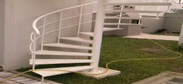 Escadas feitas conforme a necessidade do local onde será utilizada. Escada reta, escada em caracol, ou escada com patamar.